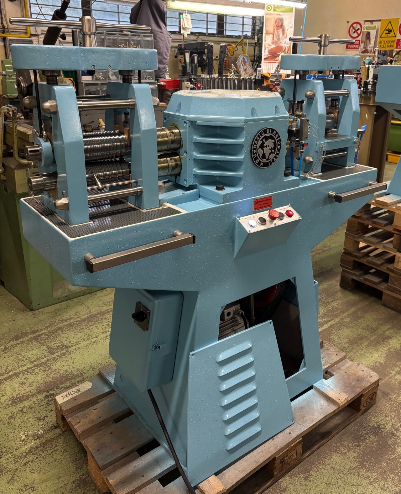 Macchina affidabile e performante. I cilindri del laminatoio doppio per lastra filo sono stati rettificati.