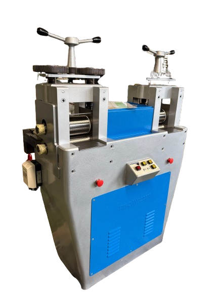 La macchina è dotata di un solido telaio che sostiene i meccanismi interni e offre stabilità durante il processo di laminazione. Il processo di laminazione avviene in modo efficiente e controllato, garantendo una produzione costante di alta qualità, con spessori uniformi e superfici lisce, necessari per la creazione di gioielli di precisione.