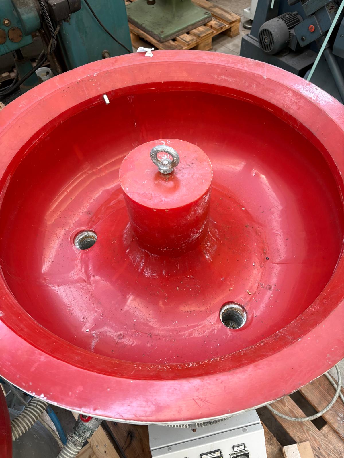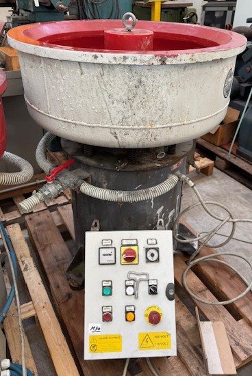 Vibratore circolare con vasca in poliuretano antiabrasivo, con scarico materiale e pannello comandi analogico. Ideale per la finitura e la lucidatura dei metalli preziosi.